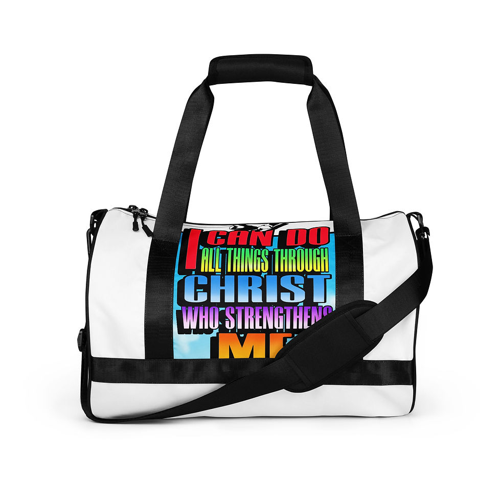 All-over print gym bag: Multicolor I Can Do All Thinks Through Christ